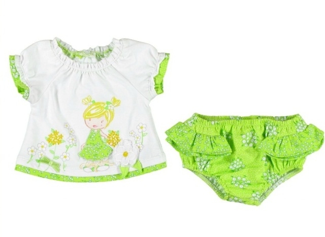 Velmi hezký dívčí komplet od španělské firmy Mayoral. Složení 93% bavlna a 7% elastanu. Aplikace na přední straně trička jsou podšity velmi jemnou látkou.