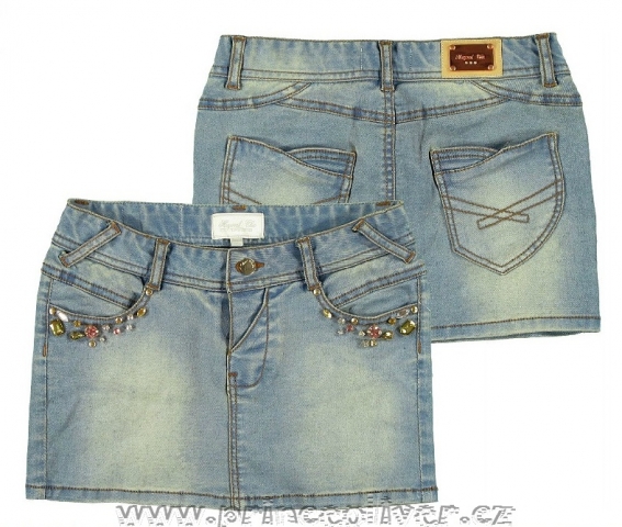 Pohodová minisukně z jemné pružné džínoviny od španělské značky mayoral. Složení 68%bavlny, 30% polyesteru a 2% elastenu. Sukně má zapínání na druky, v pase se dá stáhnout pomocí všitých gumiček. Kamínky na kapsách sukně jsou podšity.